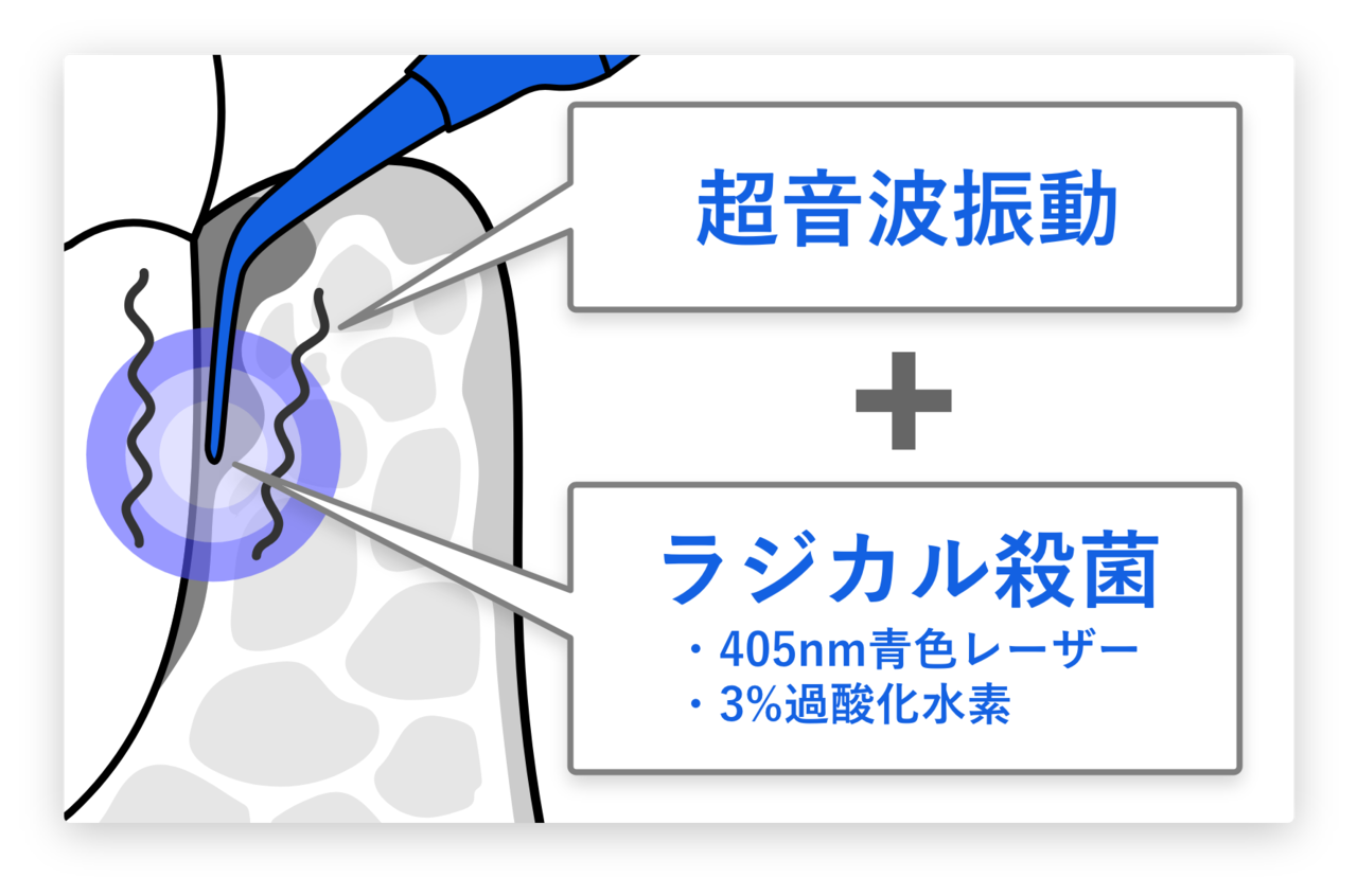 しかし、深い歯周ポケットや複雑な形状の部位では、細菌が残りやすいという課題がありました。